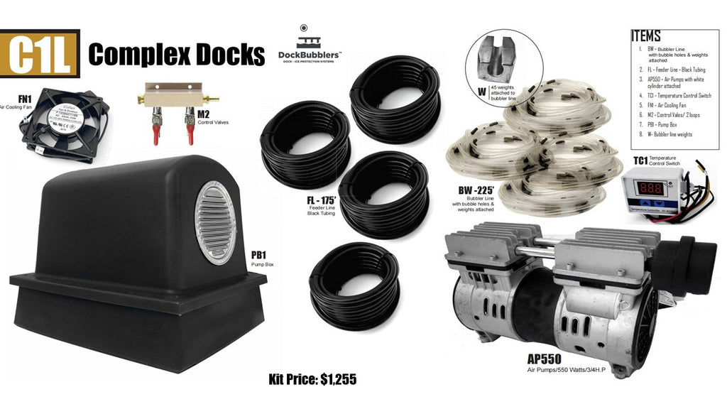 For Complex dock shapes UF, US, TT or similar, with perimeters up to 225’ of perimeter