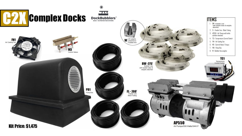 For Complex dock shapes UU or UD,, or similar, with perimeters up to 275’ of perimeter.