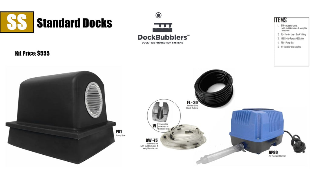 Our smallest dock package, for docks less than 70’ of perimeter (such as a 30’ straight or L-shaped dock).